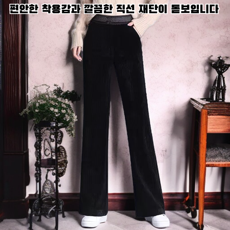 자녀 스트레이트 팬츠 와이드 하이웨스트 스트레이트 와이드 팬츠 여 날씬해 보이는 드레이프 일자 팬츠