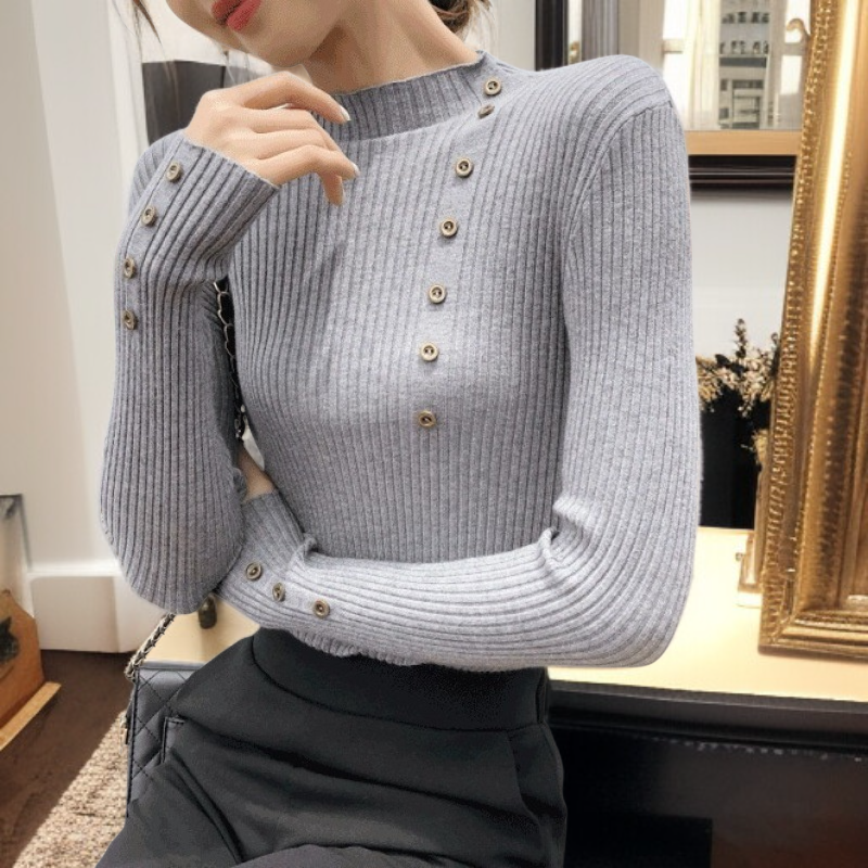 여자 폴라 보카시 니트 가을 겨울 이너 단추 스웨터 보디 니트 이너